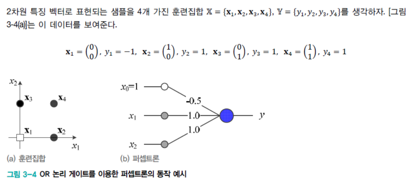 - 임의의 샘플 xk가 Y에 속한다면, 퍼셉트론의 예측 값과 실제값은 부호가 다르다.