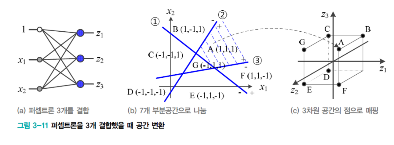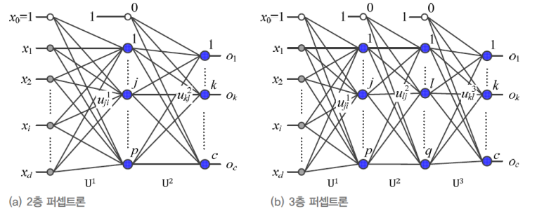 - 오른쪽 다층 퍼셉트론은 3층 퍼셉트론이다.
