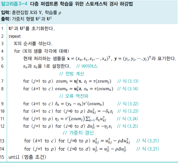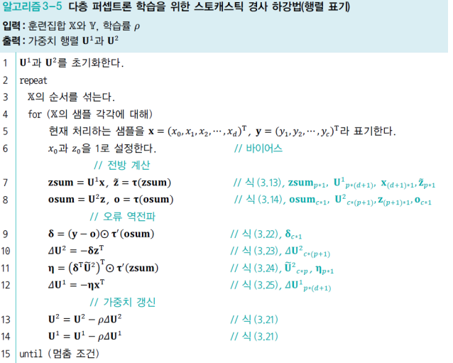 - 하지만 학습 알고리즘은 수렴할 때까지 오류 역전파를 반복해야 하므로 점근적 시간 복잡도는 다음과 같다.