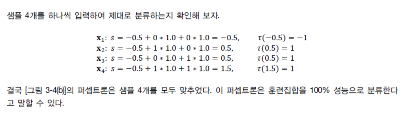 - 지금까지는 학습을 마친 퍼셉트론의 동작을 설명한 것이다