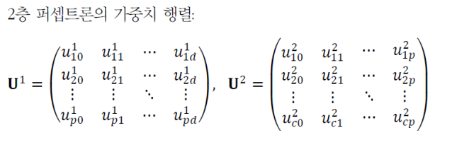 다층 퍼셉트론의 동작을 행렬로 표기하면 다음과 같다.