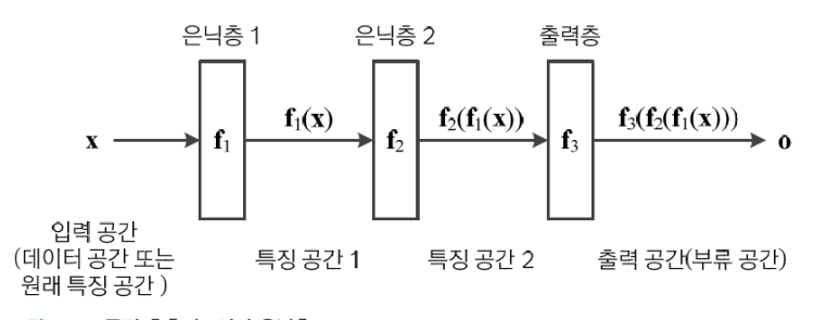 - 은닉층은 특징 벡터를 분류에 더 유리한 새로운 특징 공간으로 변환시킨다.